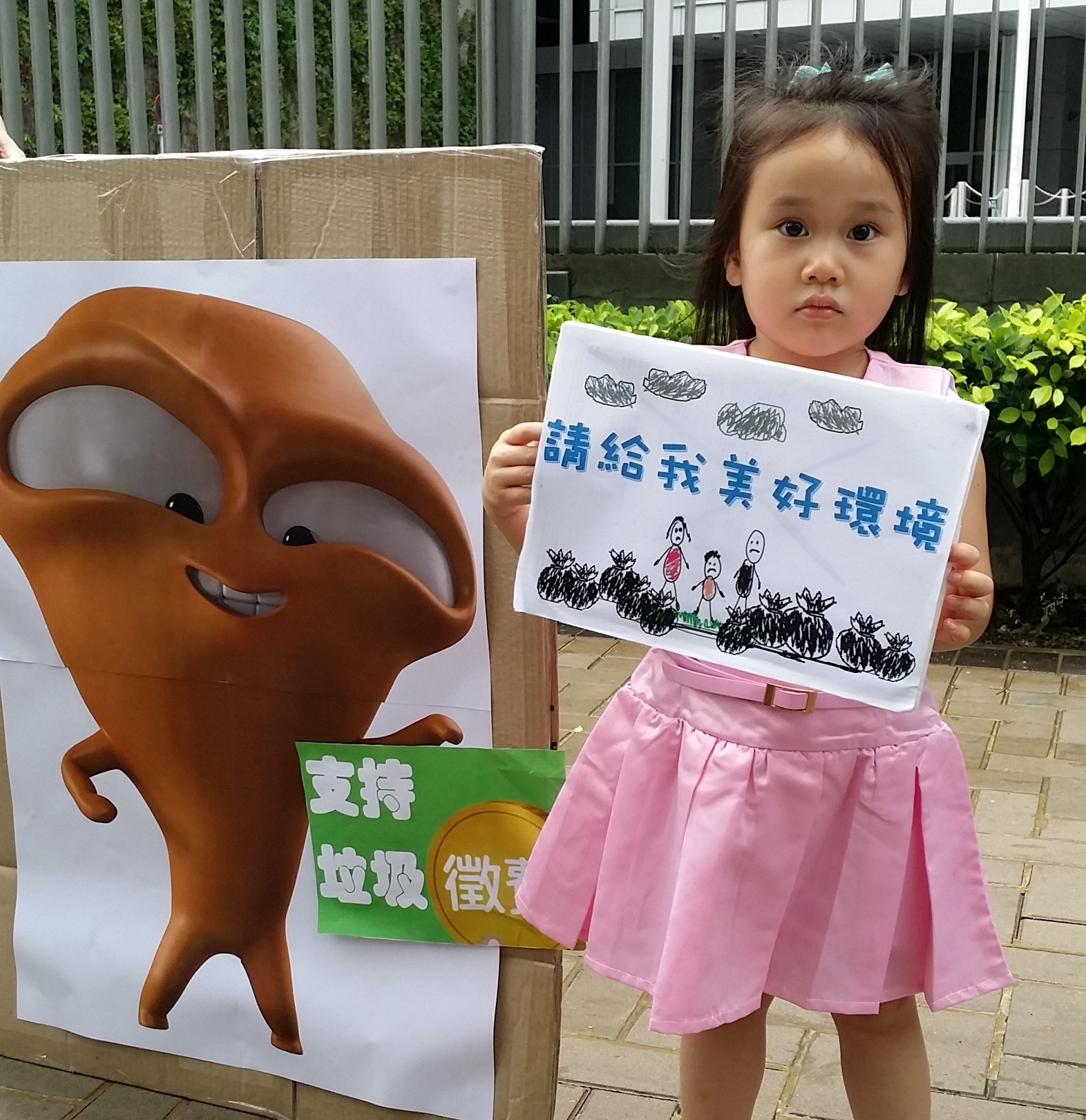 有見及此,一眾團體藉今日「世界環境日」舉行聯合行動,帶同小孩和大嘥鬼,一同向特首遞交二十個機構的聯署信,促請政府盡快向立法會提交條例草案,落實垃圾徵費。給特首的公開信內容如下: