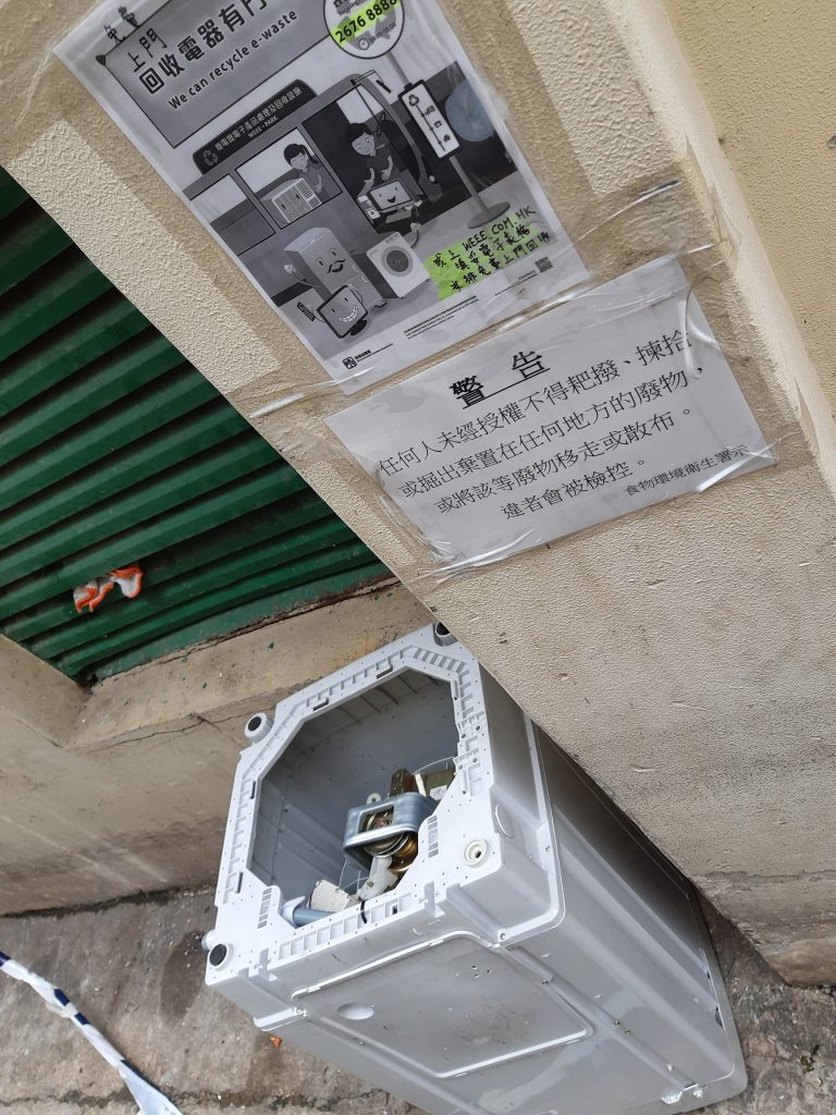 2. 垃圾站外擺放拆去有價零件的洗衣機