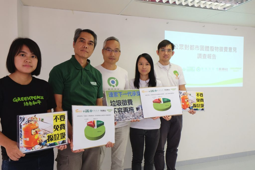 (2018年12月4日新聞稿) 綠惜地球、綠領行動、綠色力量、長春社及綠色和平五個本地環團,委託大學就市民對廢物收費立法取態進行獨立民意調查,85.5%的受訪者支持以污者自付原則處理垃圾,態度正面。值得留意的是,調查發現,基層受訪者(月入$9999或以下,公屋戶受訪者)分別有83.3%和86.4%「支持實施垃圾徵費,以減少廢物量」。環團發言人表示,調查反映基層同樣關心減廢,同時願意承擔應有的綠色公民責任,相信在政府向綜援戶等提供補貼等措施後,能進一步釋除經濟負擔的疑慮。