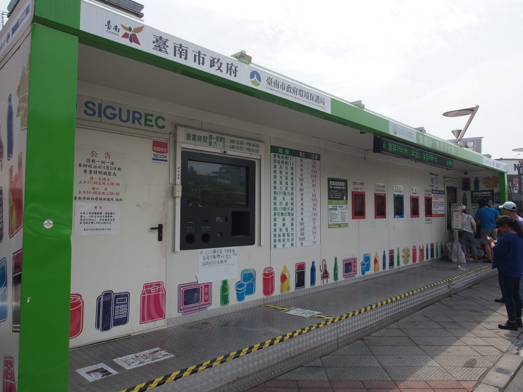 圖片:台南的有償回收機,回收類目除了廢紙、膠樽、鋁罐,可兼收廢舊電器