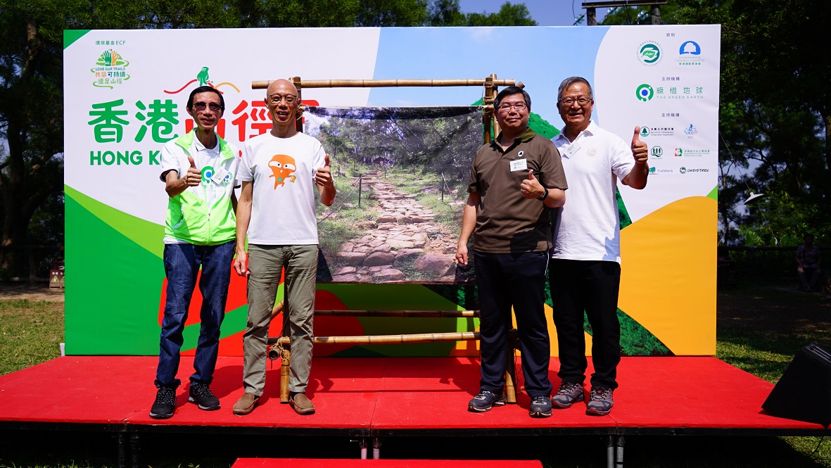 綠惜地球於今天(10月19日)舉辦首屆「香港山徑日」活動,推廣愛護山徑訊息,邀請到環境局局長黃錦星先生及漁農自然護理署署長梁肇暉博士蒞臨主禮,並親身體驗搬石頭和做木級等山徑維修工作。