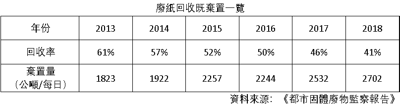 當內地持續提高回收品進口門檻、甚至緊閉門戶,全球廢紙回收注定無運行。本地廢紙高度依賴大陸市場,衝擊自然更大。