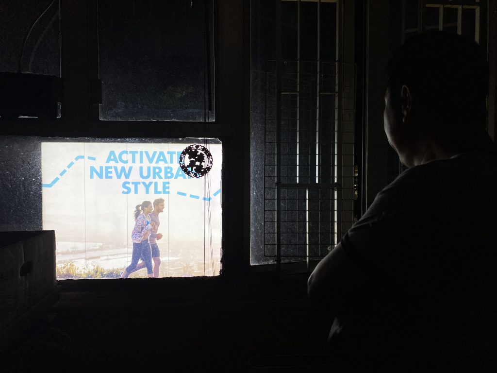屏幕燈光射入屋內,晚上家中不用亮燈也「夠照」。