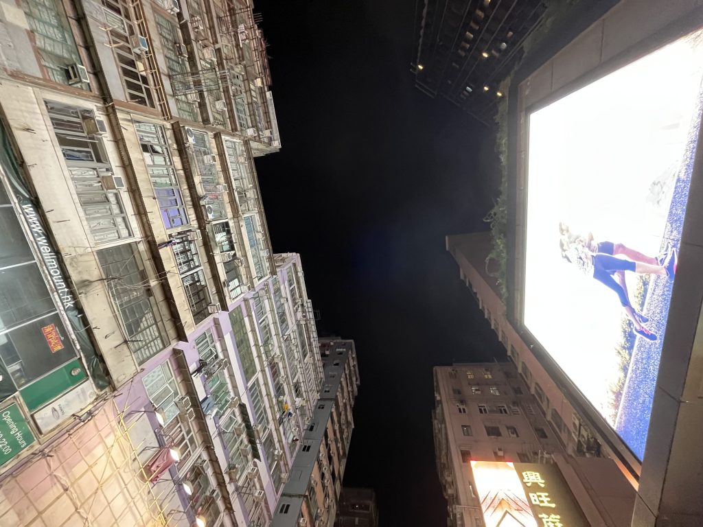 屏幕光度驚人,除正對面的住戶受苦外,光線更貪婪地向上伸展,侵襲整幢大廈。