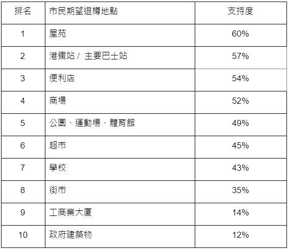 附表二:市民期望的回樽地點 (每位受訪者最多選五個)