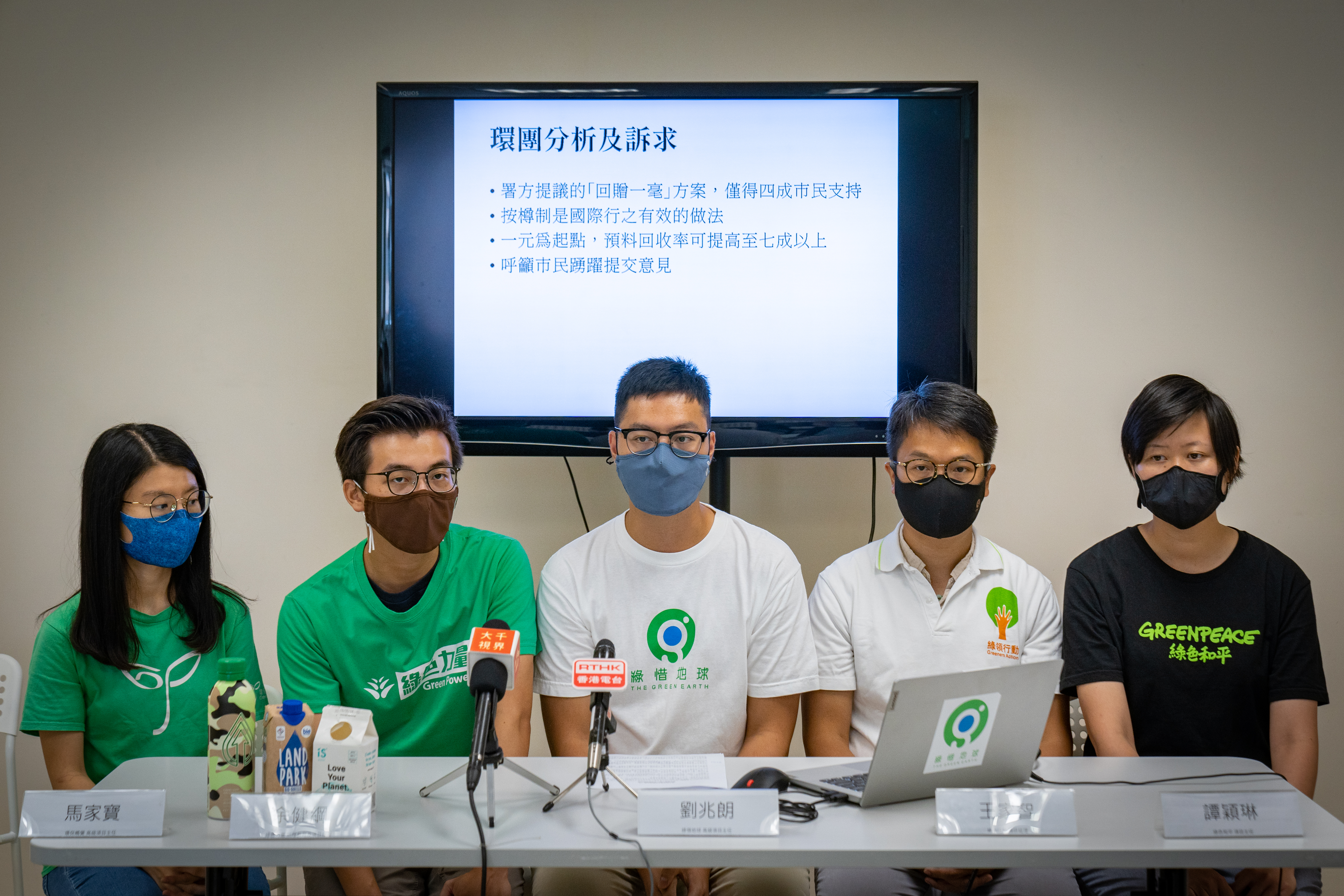 (2021年5月13日 新聞稿) 環保署膠樽生產者責任制公眾諮詢(下稱公眾諮詢)下周五 (5月21日) 結束,五個環保團體發佈《市民對膠樽生產者責任制意見調查》,結果發現,署方提議的「回贈一毫」方案,僅得四成市民支持 (即能夠吸引市民回收膠樽),其具吸引力的說法「不攻自破」。環保團體指出,按樽制是國際行之有效的做法,以一元為起點,預料回收率可提高至七成以上,呼籲市民踴躍提交意見。