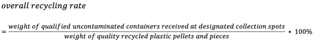 Recycling rates data should be audited per quarter by independent third-party consultants for in- time data analysis and release. The overall recycling rates should be announced annually on an open data platform for public review. For quality auditing, the formula of recycling rate should be revised as follows: