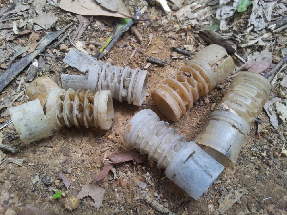 為區區六顆填彈塞對簿公堂,是小題大做嗎?容我把來龍去脈說清楚。二〇一五年初,我在城門水塘淨山執垃圾,在塘邊撿到幾顆食指般大的半透明膠塞,猜不透何方神聖,便拍下照片做記錄(見圖)。然後我們重訪同一地點多次,每次都撿獲神秘膠塞,但卻一次也不曾在其他水塘有類似發現。